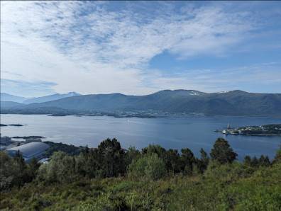 Amazing views of Alesund and the surrounding peaks and landscape. Lots of wild raspberries and hiking trails to stay off the main road to walk here. The vistas are totally worth it and the walk back to the city only took about 35 minutes. Highlight of Alesund.