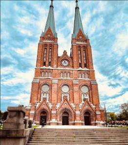 Kirken utmerker seg ved sin majestetiske arkitektur. De høye tårnene og spir signaliserer et sterkt nærvær, mens de intrikate glassmaleriene og den høye takhøyden skaper en følelse av å være i et hellig og inspirerende rom. Bygningen har gjennomgått flere restaureringer over tid, og den nyrestaurerte orgelkassen er et spesielt høydepunkt. Den er en bemerkelsesverdig kombinasjon av gotisk og renessansearkitektur, noe som gjenspeiles i både strukturen og dekorasjonen.